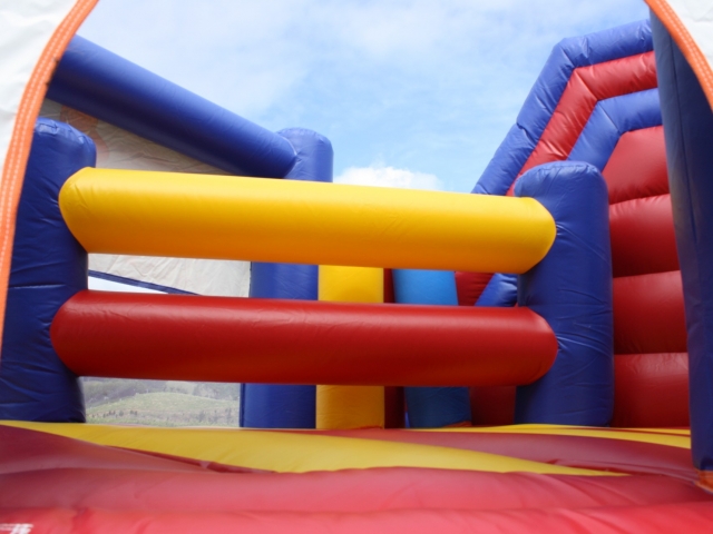 It comes with a 2m slide, ball hoop and other obstacles. It is fully enclosed so your little superhero can have a fantastic day with all his other superhero friends.